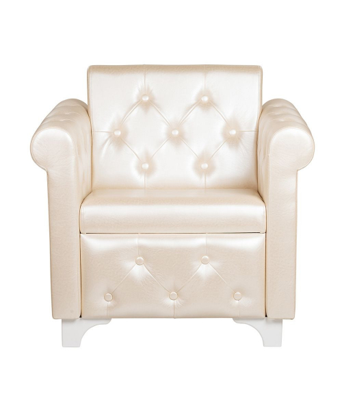 Комфортабельное кресло для холла Соната с мягкими широкими подлокотниками и удобной спинкой, декоративные пуговицы расположены на спинке, внешней части подлокотника и нижней части сиденья, опоры пластиковые белого цвета.