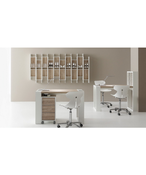 ИталияМаникюрный стол "LIVING" – это ультрасовременная компактная модель, сочетающая в своем дизайне стиль и простоту. Основание выполнено из матового меламина белого цвета, столешница – из натуральной древесины. Доступно несколько вариантов изготовления рабочей поверхности – белая лиственница, натуральный венге, дуб бардолино.
