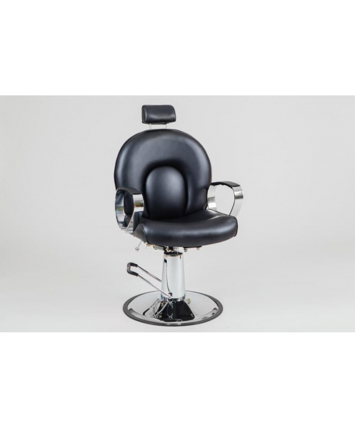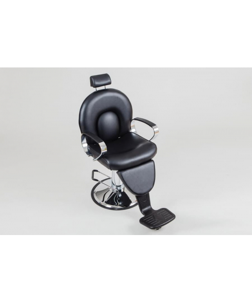 Если вы позиционируете свой салон как место премиум-класса, то обязательно обратите внимание на это мужское парикмахерское кресло. Стильное, мощное, с удобной подножкой — внимание! —на дополнительном роликовом колесе. Съемная подножка черного цвета с колесиком позволит поворачивать кресло вместе с клиентом. Эргономичная спинка интересного дизайна, небольшой подголовник, регулируемый по высоте, черная эко-кожа… всё, как любят мужчины! Крепкое хромированное основание и гидроподъемник завершают этот брутальный образ. А еще у этого кресла регулируется угол наклона спинки. Кто устал — может отдохнуть. Основание: хромированный круг. Подъёмник: гидравлический, хромированный.