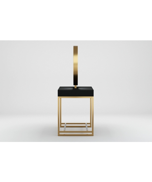 Зеркальное полотно в форме идеального круга с декоративной подсветкой, надёжная порошковая покраска, устойчивая к образованию ржавчины, вместительная столешница для инструментов, мощные металлические подножки с накладками из нержавеющей стали и максимально устойчивые опоры. Уникальное сочетание утонченного дизайна и безукоризненного качества исполнения.