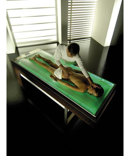 Теплая волна обдает Ваше тело… и это ZERO1. Водяной бак, вмещающий приблизительно 120 литров, полностью изготовлен из стали AISI 304 толщиной 10/10 Предохранительная ванночка от затопления из алюминия, содержащая набитый матрас Матрасик из ПВХ с запатентованным водяным методом (запрос на патент PCT зарегистрирован) Электрический нагрев воды посредством электрического сопротивления на абразивный лист изолирующего силикона толщиной 0,88 мм, установленный в основании бака; площадь рассчитана с запасом во избежание накопления известняка (осадков). Общий ток нагрева 1000 Вт при 220V/50 герц Температура воды контролируется электронным программируемым термостатом, который работает с мерой точности + / - 0.5 градусов. Предохранительный термостат, предусмотренный в интересах абсолютной безопасности Максимальное потребление электроэнергии 6A при 220V/50 герц. Электронная схема, управляемая с помощью компьютерной системы, в которой предусмотрена внешняя панель управления Циркулятор с прерывистым действием, предназначенный для накачки теплой воды вовнутрь матрасика из ПВХ, который окружает тело, лежащее на кушетке, и обдает его водой, как теплая волна тропического моря Осветительная система LED (хромотерапия) со сменой цветов в автоматическом режиме или в предустановленной последовательности (красный, оранжевый, желтый, зеленый, голубой, синий, фиолетовый) Облицовка из дуба, окрашенного в венге и серый цвет, нержавеющая сталь ДОСТОИНСТВА • Предполагает возможность любого типа массажа или лечения, при этом оператор и клиент не соприкасаются с водой • Каждые 30 секунд создает слабую волну, которая обдает все тело, начиная с ног и кончая шеей, затем в обратном направлении. • Оригинальный метод позволяет телу оставаться почти неподвижным на уровне набитого матраса кушетки, что обеспечивает идеальное сцепление между руками терапевта и кожей клиента. • Оператор может задать температуру воды и цвет • Для установки «ZERO1» не нужны особые условия, так как «ZERO1» заменяет обычную массажную кушетку. Технические параметры •Конструкция из дуба цвета венге или серого •Стояк и панель из нержавеющей стали •Максимальное поглощение 220V – 6A •Подбитая плоскость с запатентованным методом сухого орошения •Освещение воды различными цветами (запатентованный метод) Размеры: 71 мин.-86 макс. H от опорной поверхности (регулируемая высота) Вес: 150 КГ ПУСТАЯ; ≈ 250/260 КГ НАПОЛНЕННАЯ ВОДОЙ