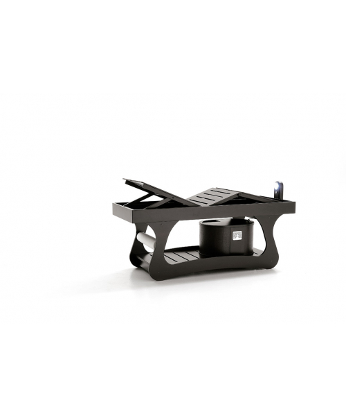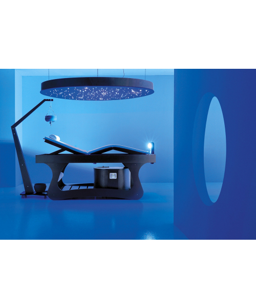 Это уникальная в своем роде модель. Ее каркас изготовлен из натуральной древесины, покрытой краской, устойчивой к образованию плесени и грибка. Цвет каркаса – темный венге. Кушетка подходит для выполнения всех видов массажа, а также паровых ванн, ароматерапии и грязелечения. Модель комплектуется специальным навесом, душем, прожектором с цветовыми циклами, а также регулируемым матрасом. Стоимость оборудования зависит от выбранной комплектации. Каркас оснащен металлическим основанием для хранения инвентаря. Производителем предусмотрена возможность регулировать положение матраса.